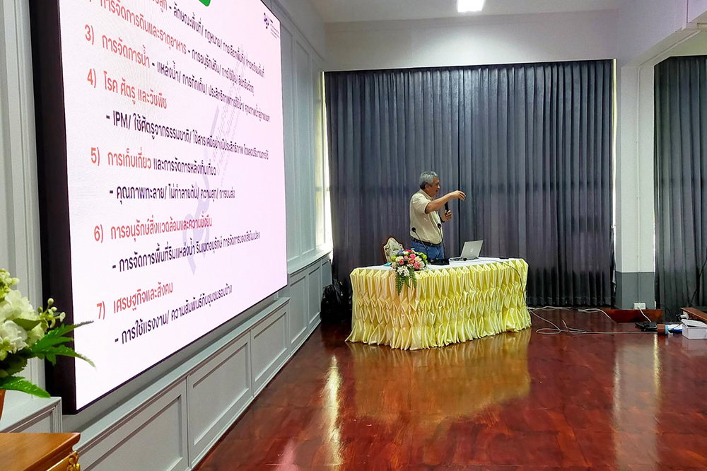 อาจารย์ธีระพงศ์ จันทรนิยม บรรยายพิเศษในหัวข้อเรื่อง การจัดการสวนปาล์มน้ำมันเพื่อความยั่งยืน (Best Management Practices in Oil Palm)